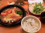 ハンバーグ自体は正統派の牛肉100%という感じ。これは好みによるけど、もっとおいしい店はあるかな。ただ、今日頼んだハンバーグにのせたラクレットチーズがおいしかった〜。付け合わせも野菜たっぷりで、豆と雑穀入りのご飯をお代わりしたらもう幸せ。最後のデザートは、いくつか選べる中からクリームブリュレをオーダー。これも濃厚でウマー。ここは通いたくなります。お勧め。